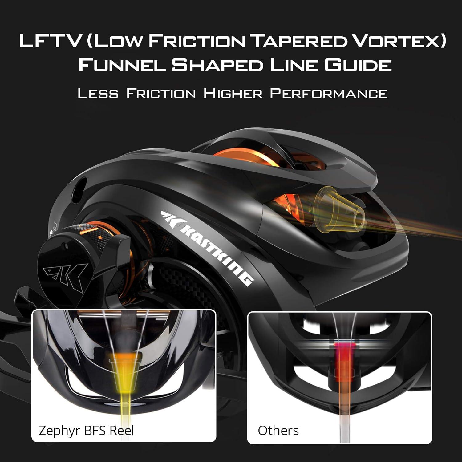 PRECISION BUILT – HI-END COMPONENTS – KastKing Zephyr Bait Finesse baitcaster reels have undergone an extensive design and manufacturer process that gives you the lightness and strength of carbon fiber plus the durability and smoothness of precision gears and double shielded stainless steel ball bearings in a fishing reel that only weighs 5.6oz.